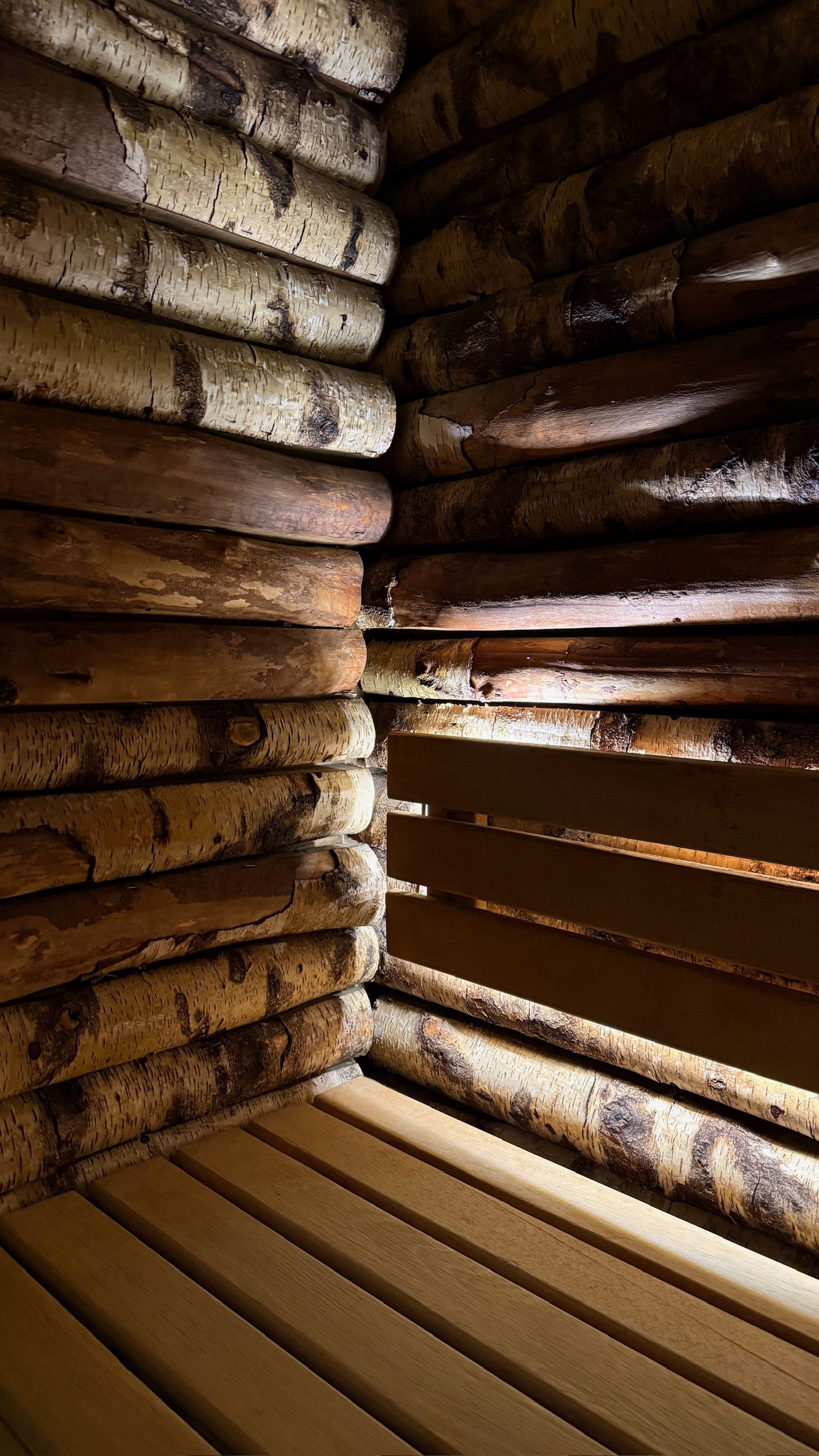 A high-heat, low-humidity environment typically made of wood. Temperatures range from 160–200°F. The goal is to induce sweating, promote circulation, and support relaxation. Cedar or hinoki are often used because they stay cool to the touch, resist moisture and bacteria, and release subtle aromatherapeutic oils (that nice sauna smell) that deepen the calming effect of the heat.